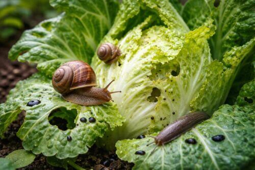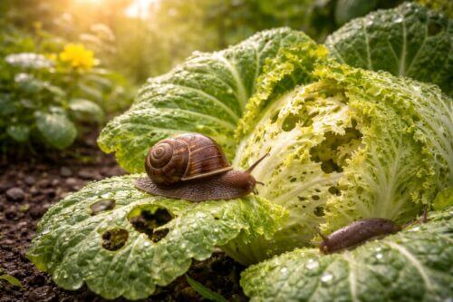 特にやっかいなのは、ナメクジのほうが結球のすき間に入り込みやすい点です。一方でカタツムリも外葉や株元周辺に潜み、夜間に活動して葉を食べます。見分け方にこだわりすぎるより、銀色に光る粘液跡があるか、朝に新しい食害が増えているかを確認するほうが、実際の駆除では有効です。