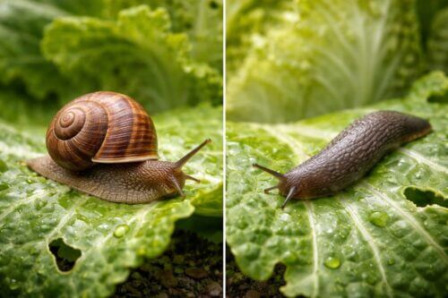 白菜で見かける加害者は、見た目こそ違っても対策の軸はかなり共通しています。大きな違いは殻の有無で、殻があるのがカタツムリ、目立つ殻がないのがナメクジです。ただ、どちらも湿った場所を好み、やわらかい葉を削るように食べるため、白菜では同じような穴や欠けた食痕を残します。