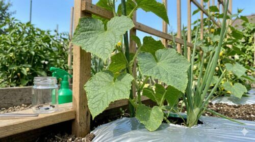 農薬に頼りすぎたくない方におすすめなのが、コンパニオンプランツ(共栄植物)の活用です。きゅうりの定植時に、株元にネギを一緒に植えてみてください。