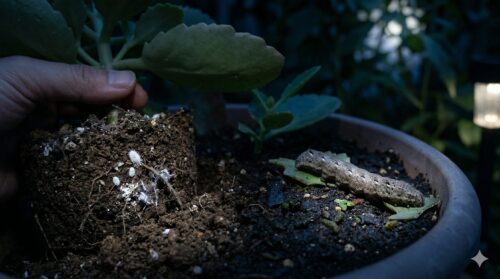 ネジラミ対策としては、植え替え時に古い土を完全に落とし、根を綺麗に洗うのが基本です。ヨトウムシに関しては、株元の土の表面に黒くて小さな糞が落ちていないかチェックしてください。糞があれば、そのすぐ近くの土の中に犯人が潜んでいます。