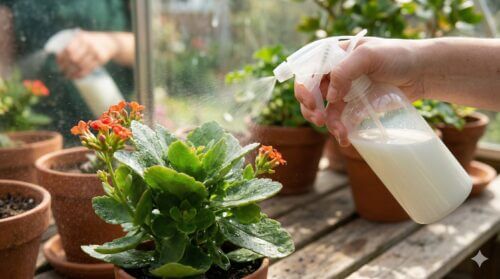 牛乳スプレーは散布して乾燥させた後、数時間以内に必ず真水できれいに洗い流してください。そのまま放置すると、残った牛乳成分が腐敗して激しい悪臭を放つだけでなく、そこにカビが発生して「灰色カビ病」や「すす病」を誘発する原因となります。洗い流す工程までがセットであることを忘れないでください。
