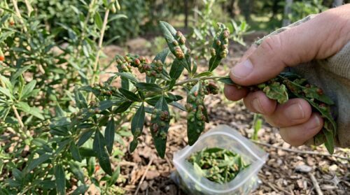 気温が上がり、乾燥が続く夏場に猛威を振るうのがハダニです。体長0.5mm程度の極小サイズなので肉眼では確認しづらいですが、被害を受けた葉には「かすり状」の白い斑点が無数に現れます。これはハダニが葉の細胞を壊して中身を吸った跡です。私は夏場のクコ栽培において、このハダニをいかに抑制するかが収穫量を左右すると考えています。