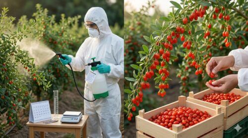食用クコを栽培する上で最も重要な数値が「収穫前日数」です。これは、最後に農薬を散布してから収穫を開始するまでに空けなければならない最低限の期間を指します。この期間を空けることで、日光や微生物の働きによって農薬成分が分解され、残留農薬が安全基準値以下になることが保証されています。例えば「収穫前日数が7日」と指定されている薬剤を散布した場合、中6日は収穫を控えなければなりません。