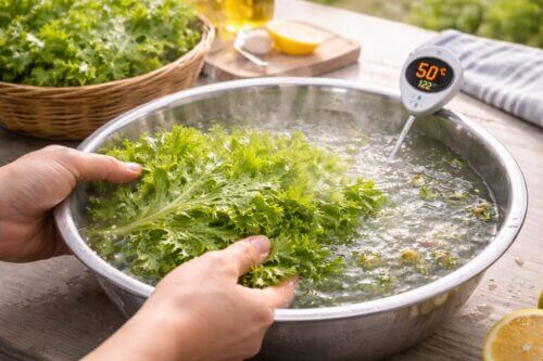 ただし、温度管理には細心の注意を払ってください。43度以下では雑菌が繁殖しやすくなり、逆に60度を超えると葉が煮えて細胞が壊れてしまいます。必ず温度計を使用し、50度前後をキープしながら洗うことが成功の秘訣です。洗い終わった後はすぐに冷水に浸して締め、水気を切ってから冷蔵庫で保存すれば、虫の心配をすることなく、最高に美味しいわさび菜サラダを楽しむことができます。