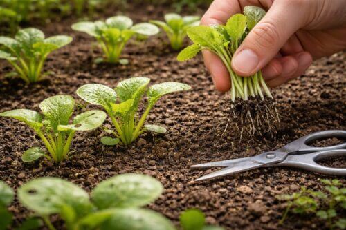 私が間引きで必ず見るのは、葉の中心が素直に開いているか、葉裏に虫やべたつきがないか、地際が細く弱っていないか、葉に丸穴や透けた傷が多くないかの4点です。この4点を見れば、吸汁害虫、食葉害虫、地際害虫の兆候をかなり拾えます。単に背丈だけで残す株を決めると、後から被害が強く出ることがあります。