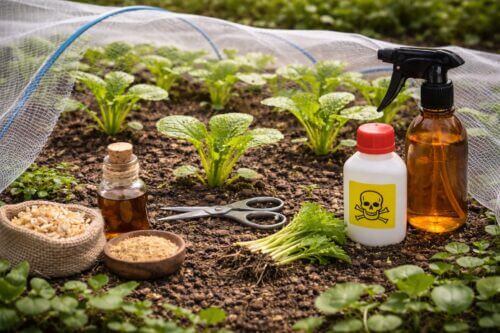 具体的には、穴なら葉裏と中心部を確認する、苗が倒れたら土を掘る、粘液跡があれば夜の巡回をする、というように、症状ごとに視点を切り替えるのがコツです。そのうえで、防虫ネット、間引き、湿気管理、必要に応じた自然資材や農薬を組み合わせれば、被害はかなり抑えやすくなります。どれか一つの方法に期待を集中させるのではなく、物理対策と観察、栽培管理を積み上げたうえで不足分を補う考え方が安定します。