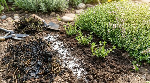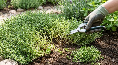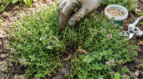 もし株が完全に死んでしまった箇所があるなら、元気な部分から茎を10cmほど切り取り、土に挿す「挿し木(挿し芽)」を行いましょう。タイムは節々から根を出す性質が非常に強いため、春か秋なら高確率で発根し、数ヶ月で隙間を埋めてくれます。自分の庭で育った「適応済みのクローン」で補修するのが、最も確実で安上がりな再生術です。