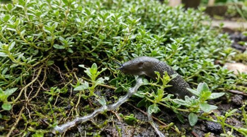 クリーピングタイムが順調に育ち、密度の高いグランドカバーを形成すればするほど、その下層部は太陽光が遮られ、常に湿り気を帯びた暗所となります。これがナメクジにとっての「楽園」を作り出してしまいます。彼らは乾燥に極めて弱いため、日中は直射日光の当たらないタイムの株元に深く潜伏し、気温が下がり湿度が上がる夜間になると活動を開始します。
