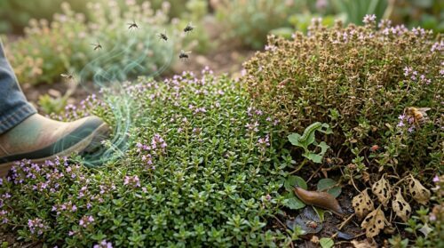 ナメクジは植物が放つ精油成分の香りによる忌避効果よりも、「物理的な湿り気と隠れ家」としての利便性を優先して定住します。タイムの香りで虫が寄らないと過信するのは禁物です。