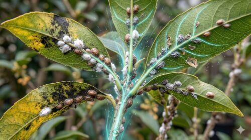 金木犀の枝や葉裏に、白い綿のようなものや、茶褐色の小さな貝殻のようなものが固着していませんか?それはカイガラムシです。金木犀において最も防除が困難と言われるこの害虫は、放置すると「すす病」を誘発し、最悪の場合は木を枯死させてしまいます。
