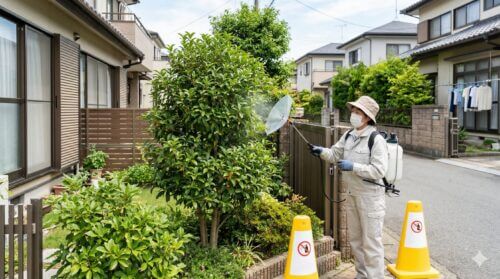 お庭での薬剤散布において、最も神経を使うのが近隣住民の方々への影響ではないでしょうか。特に金木犀は境界付近に植えられていることが多く、消毒作業が原因でトラブルに発展するケースも少なくありません。私たちはプロとして、単に虫を殺すだけでなく、周囲の環境に調和した作業を徹底しています。