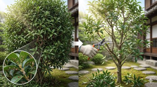 金木犀の剪定は、花が終わった直後の10月下旬から11月、または新芽が動く前の3月頃が適期です。剪定で物理的に害虫の生息域を減らした後に、仕上げとして金木犀につく害虫に効く殺虫剤を散布するのが、最も効率的なルーチンです。特に、枯れ枝や病変した枝は、害虫の越冬場所になりやすいため、迷わず根元から切り落としましょう。