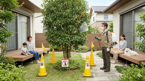 「庭で子供を遊ばせたい」「愛犬が葉を舐めるかもしれない」といった不安は、多くの飼い主様や親御様が抱える切実な問題です。私自身も、安全性を第一に考えた防除計画を常に提案しています。現代の農薬は厳しい基準をクリアしていますが、それでも守るべき絶対のルールが存在します。