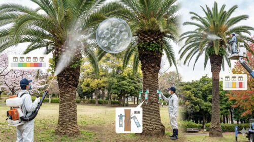 庭園や街路で南国の情緒を演出してくれるヤシの木ですが、近年、ヤシの木につく害虫による被害が日本各地で深刻な問題となっています。大切に育てていたフェニックスやワシントンヤシが、ある日突然元気をなくし、気づいた時には手遅れで完全に枯れるという事態も珍しくありません。