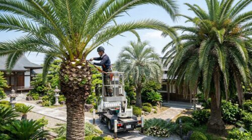 さらに、高くなりすぎたヤシの木の剪定を素人が行うのは極めて危険です。ヤシの葉は意外と重く、またフェニックスなどは葉の付け根に鋭い棘があります。転落事故や怪我を未然に防ぐためにも、樹高が3メートルを超えるような大型個体の場合は、無理をせず信頼できる造園のプロフェッショナルに相談しましょう。