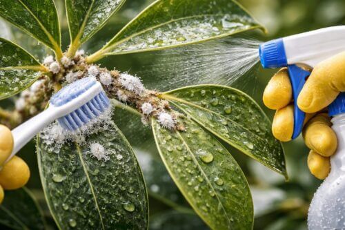 歯ブラシでの物理的な除去や葉水による初期の対処法