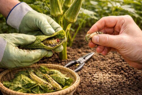 また、被害がひどく葉を切り取る場合は、その場に捨てず、必ずビニール袋に入れて密閉し、日当たりの良い場所に置いて「蒸し殺し」にするか、可燃ごみとして処分してください。圃場内に放置した被害葉からは、必ずと言っていいほど生き残った幼虫が這い出し、再びあなたのオクラへと戻ってきます。