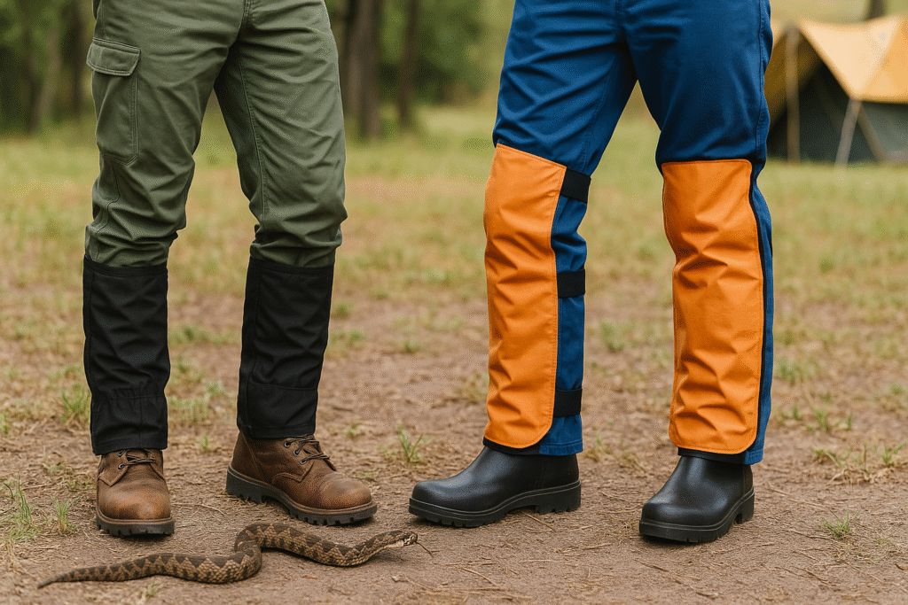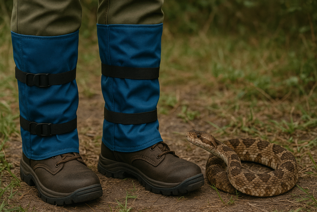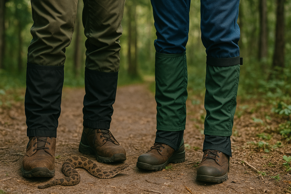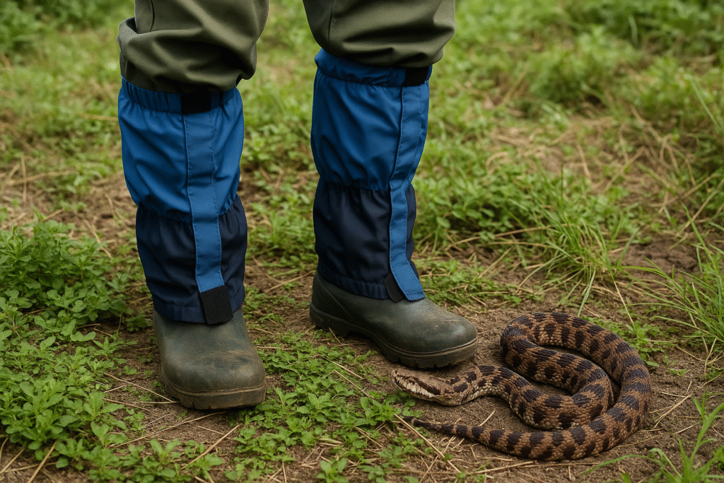 マムシ対策に使うゲイターは、登山用の軽いものではなく、膝下をしっかり覆えるロングタイプで、ある程度の厚みと耐久性があるものを選ぶと安心です。