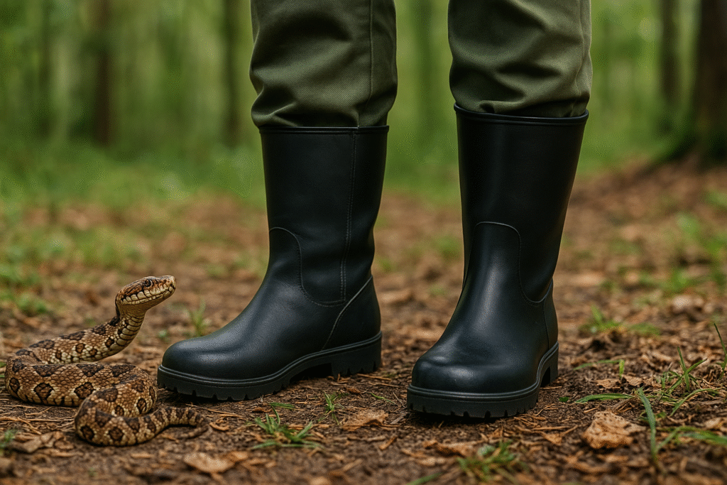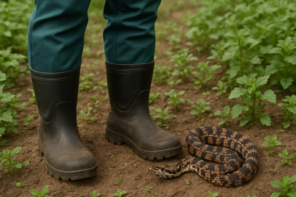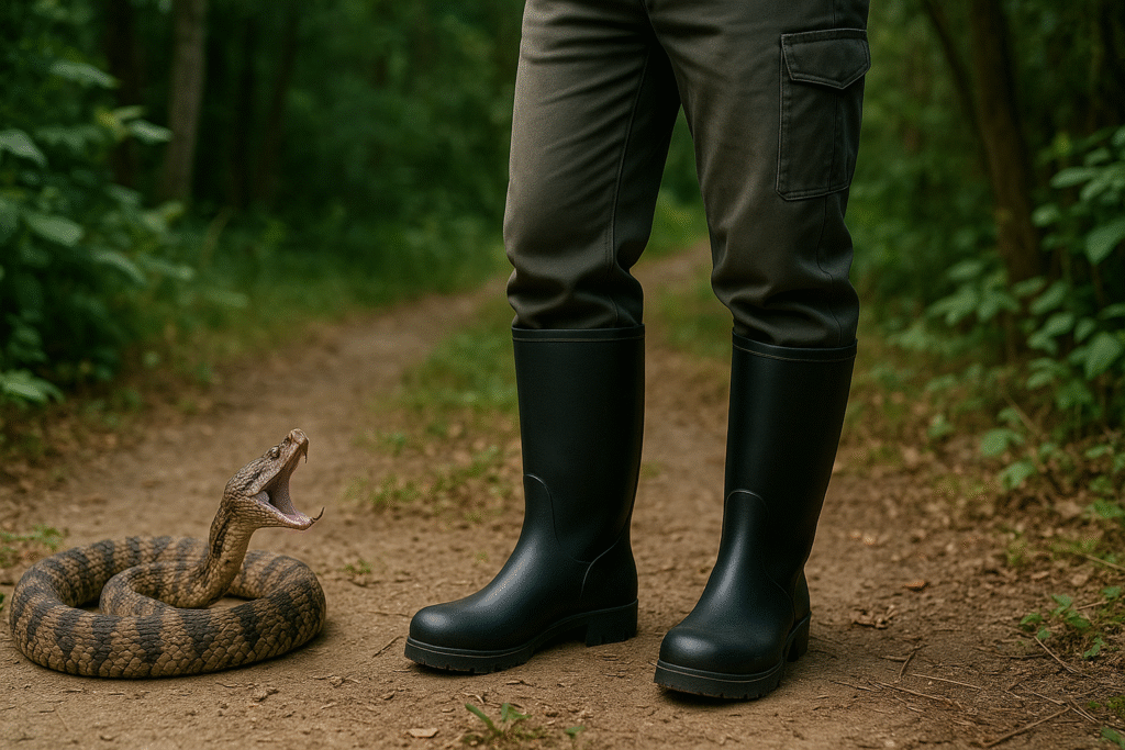 滑りにくいソールと、足首をしっかりホールドしてくれる形状の長靴は、結果的にマムシとの接触機会を減らすことにもつながります。