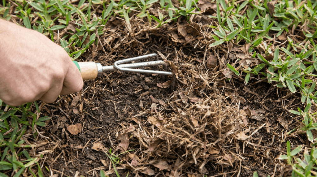 サッチを薄くできると、害虫の餌が減り、住みにくくなります。次は「分解を加速する」発想で、残りを処理していきます。