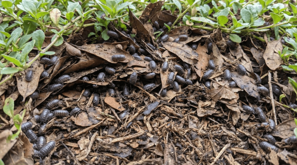 ダンゴムシは、枯れ葉や刈りカスなどの有機物が増えると一気に増殖しやすい代表格です。クラピアは生長が早く、古い葉が更新されるので、地際には細かな枯れ葉が溜まりがち。ここに刈りカスまで残ると、ダンゴムシにとっては食べ物と隠れ家の両方が手に入ります。