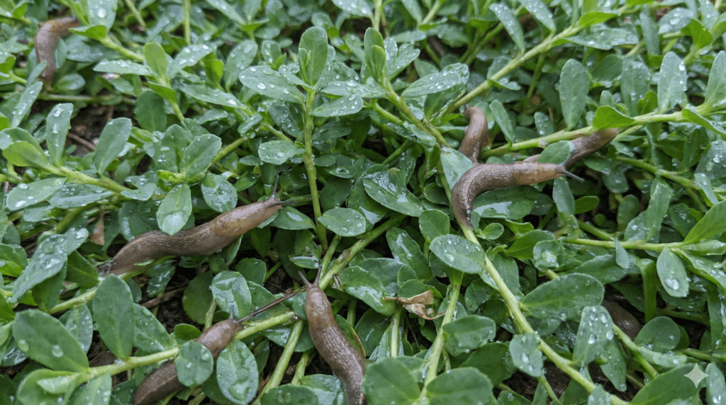 ナメクジは湿気と隙間が大好物です。クラピアの地際は、葉が地面を覆って乾きにくく、しかも茎が絡み合って隠れる場所が多い。ここに水やりや雨が続くと、ナメクジの活動時間が伸びます。