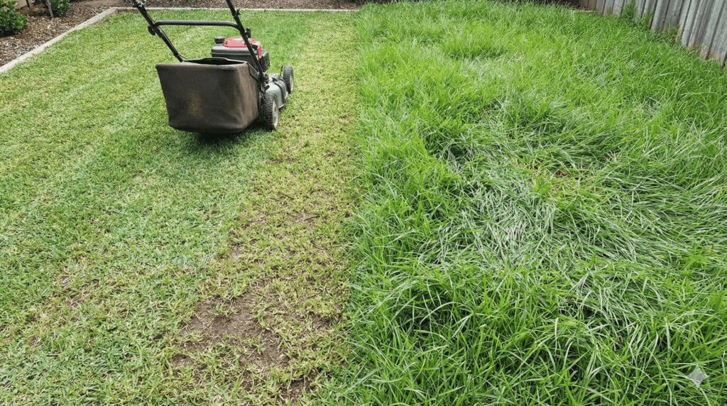 できるなら集草できる芝刈り機や回収袋を使い、刈りカスを外へ搬出してください。難しい場合でも、最低限、隅や段差の下、室外機の裏など「湿気が残る場所」だけでも回収しましょう。ここを徹底するだけで、虫だらけの感じが変わることがあります。