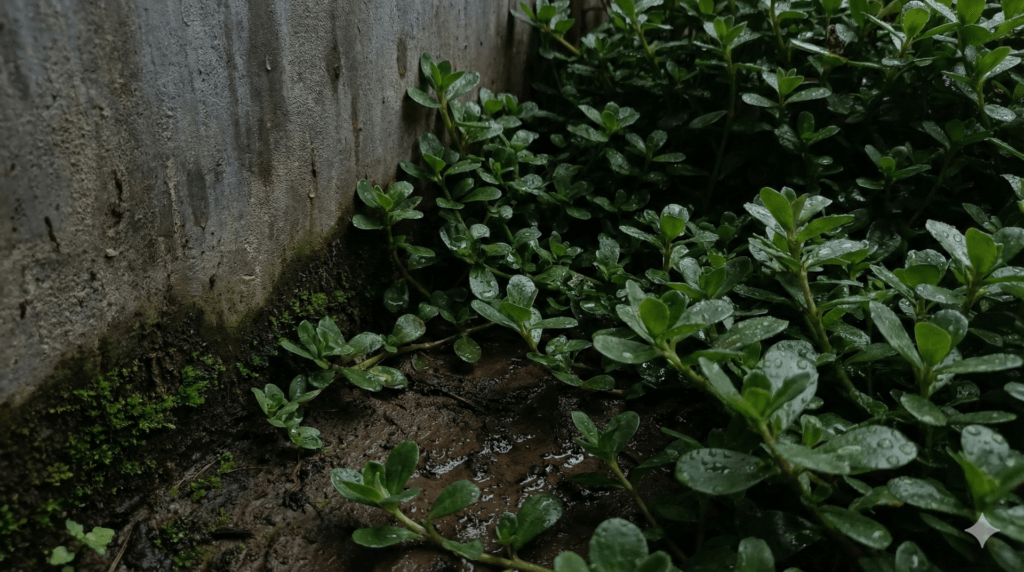 ナメクジは「常に湿っている」場所に集まります。クラピアの下が湿りやすいのはもちろんですが、特に増えやすいのは、散水が当たり続ける場所、排水がうまく流れない低い場所、壁際の風が止まる場所です。夜にライトを当てると、地際の茎の間からヌルっと出てくることがあります。