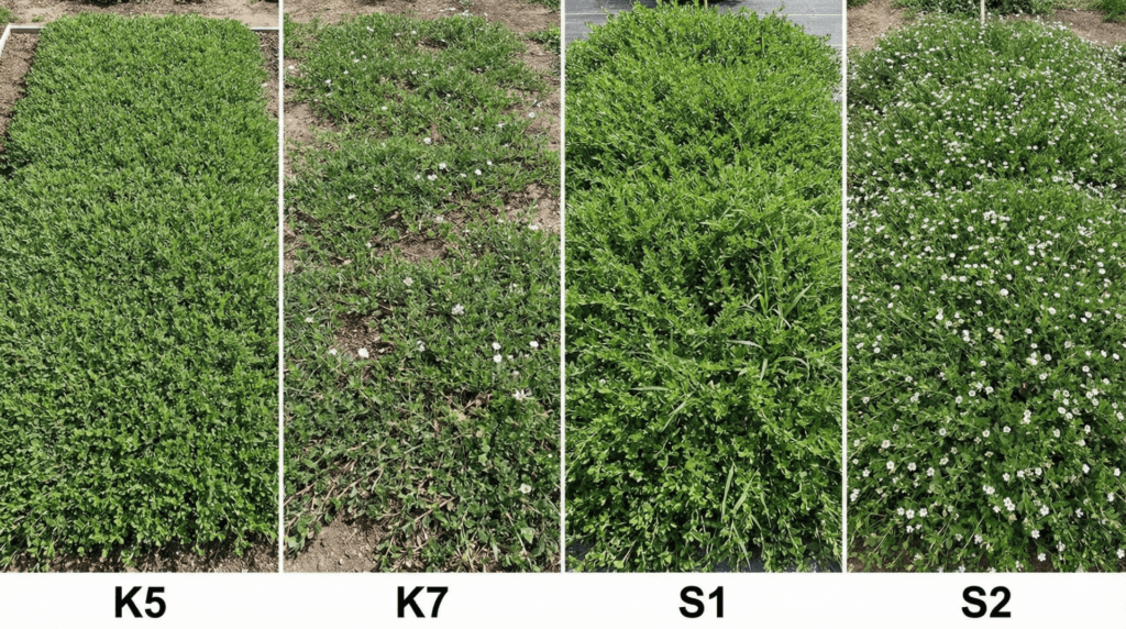 クラピアの種類(K5、K7、S1、S2)は、景観だけでなく過繁茂のしやすさ管理頻度に差が出ます。害虫リスクは品種だけで決まるのではなく、品種の性格と管理体制のミスマッチで跳ね上がる、と考えると分かりやすいです。