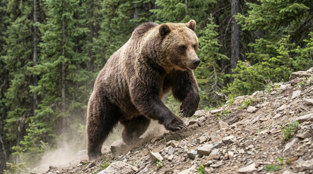 特にグリズリーは、肩の盛り上がりが目立つほど前脚の筋肉が発達しており、重量級ボクサーのパンチに匹敵するようなスワイプを繰り出します。