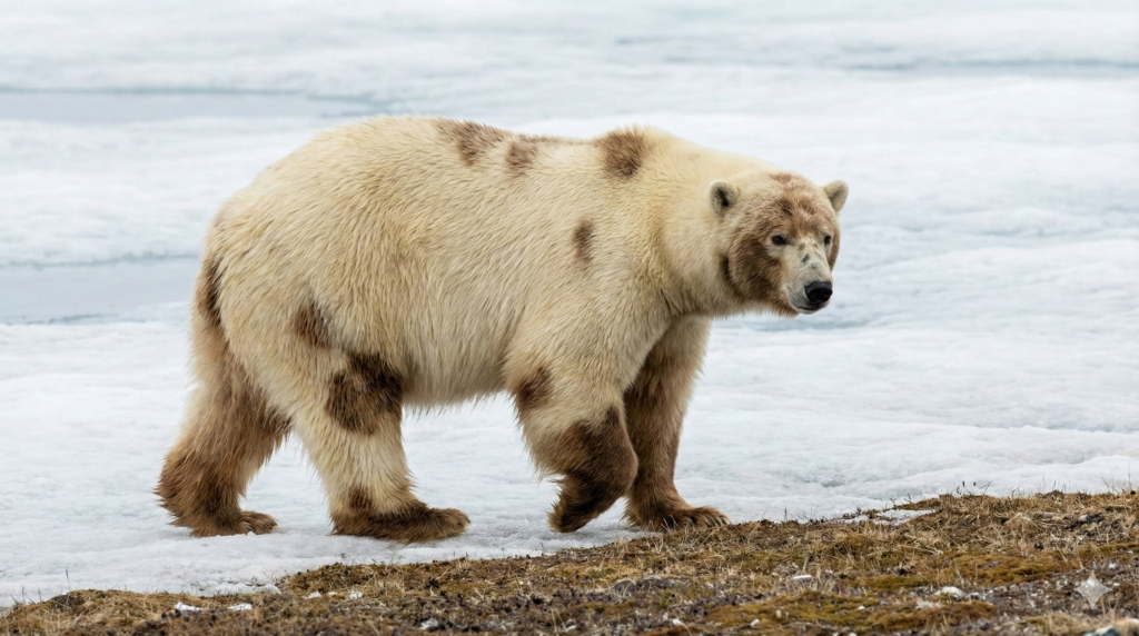 北極圏では、ホッキョクグマとグリズリーの交雑によって生まれたクマが、ピズリーやグローラーベアといった俗称で呼ばれています。