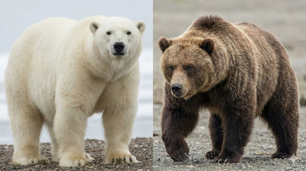 一方で、ヒグマ側もグリズリーやコディアックヒグマのように、条件がそろうとホッキョクグマに匹敵するサイズまで巨大化することがあります。