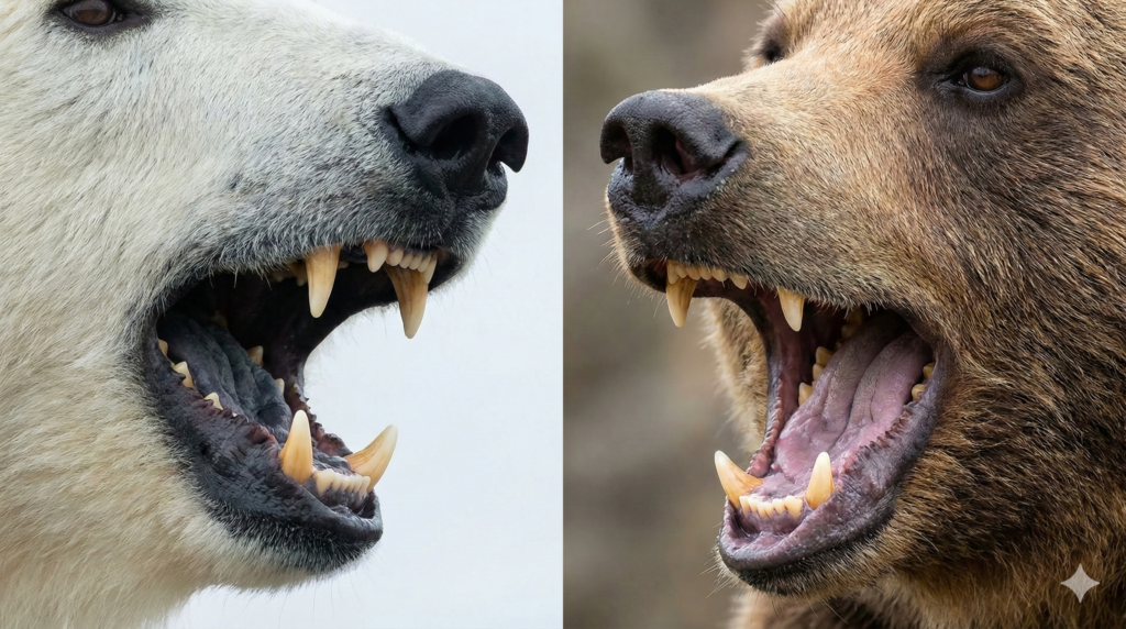 特にホッキョクグマは、氷上で仕留めたアザラシを短時間で食べ尽くす必要があり、効率良く骨や厚い皮を処理できるよう進化しています。