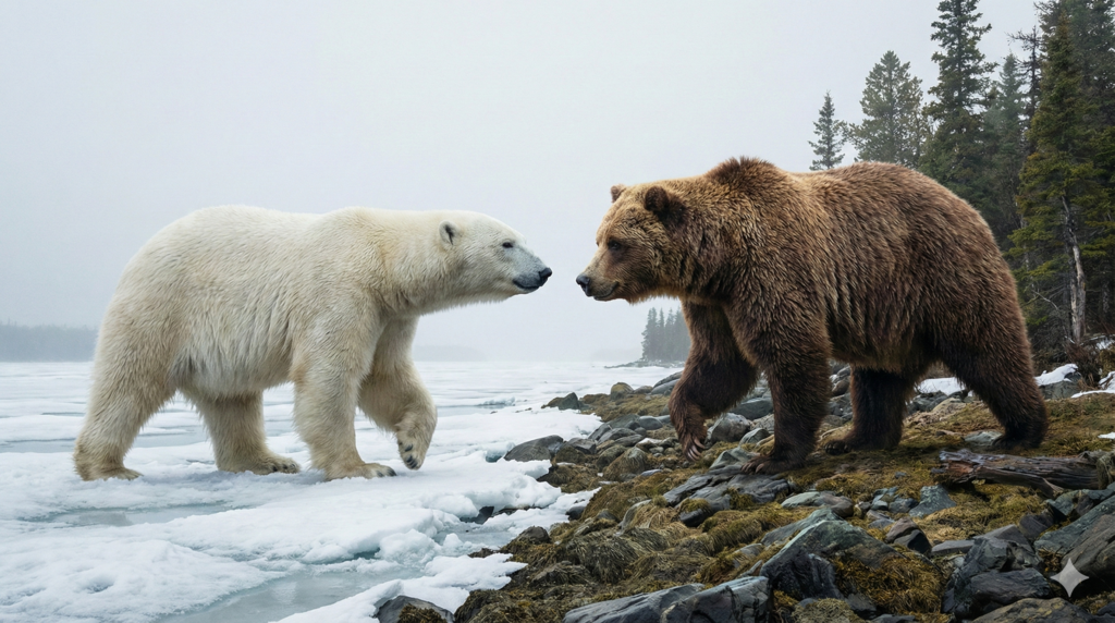 このハイブリッドの存在は、「ホッキョクグマとヒグマが出会うと必ず戦う」というイメージとは少し違う現実も示しています。