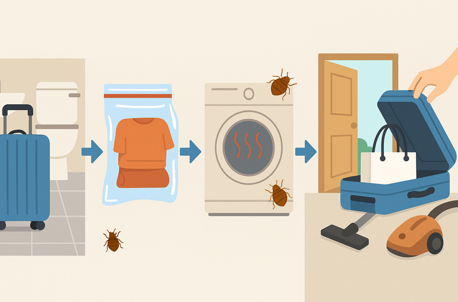 過信せず、入室直後の目視確認と、荷物・使用済み衣類の隔離管理(密閉袋に分別し、清潔衣類と混在させない)が、もっとも再現性の高い予防策です。