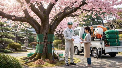 河津桜が成長し、自分の背丈の数倍にもなると、家庭用の道具での管理は限界を迎えます。特に高所作業を伴う剪定や、強力な動力噴霧器が必要な消毒、あるいはクビアカツヤカミキリの本格的な駆除などは、専門業者に依頼するのが最も安全で確実です。では、実際にプロに頼むといくらかかるのか。ここでは一般的な相場をまとめました。