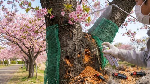 クビアカツヤカミキリの駆除と物理的防除