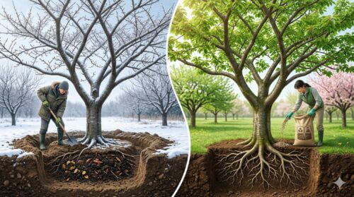 人間と同じで、栄養状態が良い木は病害虫への抵抗力も高まります。河津桜の管理において「施肥(せひ)」は、単に花を咲かせるためだけではなく、強い木を作るための「体質改善」として捉えるべきです。肥料を与えるタイミングは年に2回、それぞれ目的が異なります。