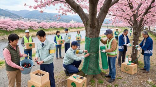 また、地域のボランティア団体や観光協会と連携することも有効です。河津桜の名所では一斉消毒を行っていることが多く、そのスケジュールに合わせて自宅の木も消毒することで、地域全体の害虫密度を下げ、効果的な防衛が可能になります。病害虫対策は「面」で行うのが鉄則です。隣近所と情報を共有し、共に大切な河津桜を守っていくという姿勢が、結果としてあなたの大切な一本を守ることにつながるのです。正確な情報は各自治体の公式サイトをご確認ください。