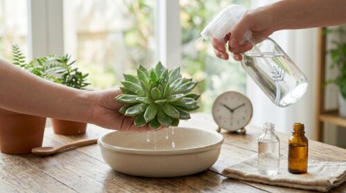 害虫を駆除するために高濃度のアルコールを使用したり、大量に噴霧したりした場合は、30分〜1時間ほど置いた後に水で軽く洗い流すのがプロの裏技です。アルコールの殺虫効果は接触した瞬間に発揮されるため、長時間葉の上に留めておく必要はありません。むしろ、必要以上に長く付着させておくと、植物の表面を保護している油分まで奪い去ってしまいます。