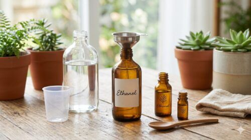 一般的に入手しやすいのは「消毒用エタノール」ですが、より安価な「消毒用イソプロパノール」も存在します。どちらも殺虫効果はありますが、イソプロパノールのほうが植物に対する毒性(薬害)がやや強く出る傾向があるため、基本的にはエタノール(無水エタノールを薄めたもの、または消毒用エタノール液)の使用を推奨します。無水エタノール(99.5%以上)を使用する場合は、加える水の量を調整して目的の濃度に仕上げます。