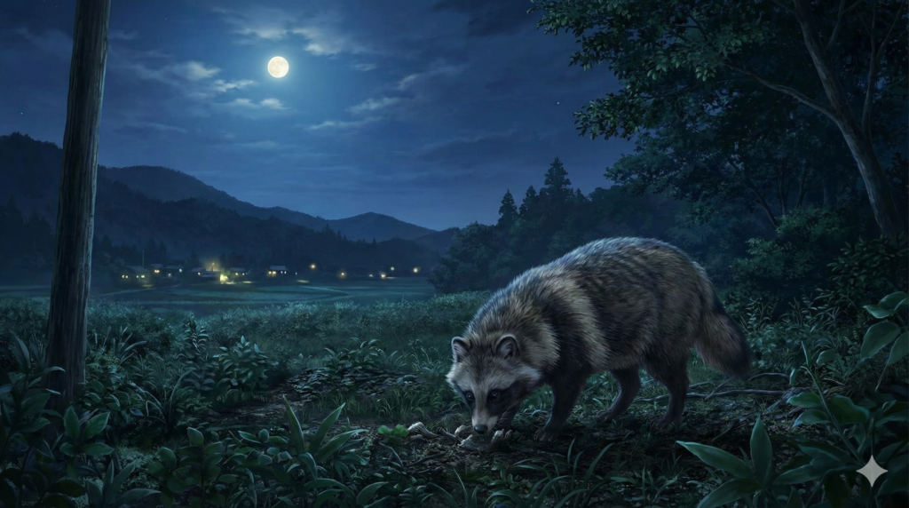 タヌキは夜行性寄りで、人の気配が薄い夕方〜夜間に動くことが多いです。