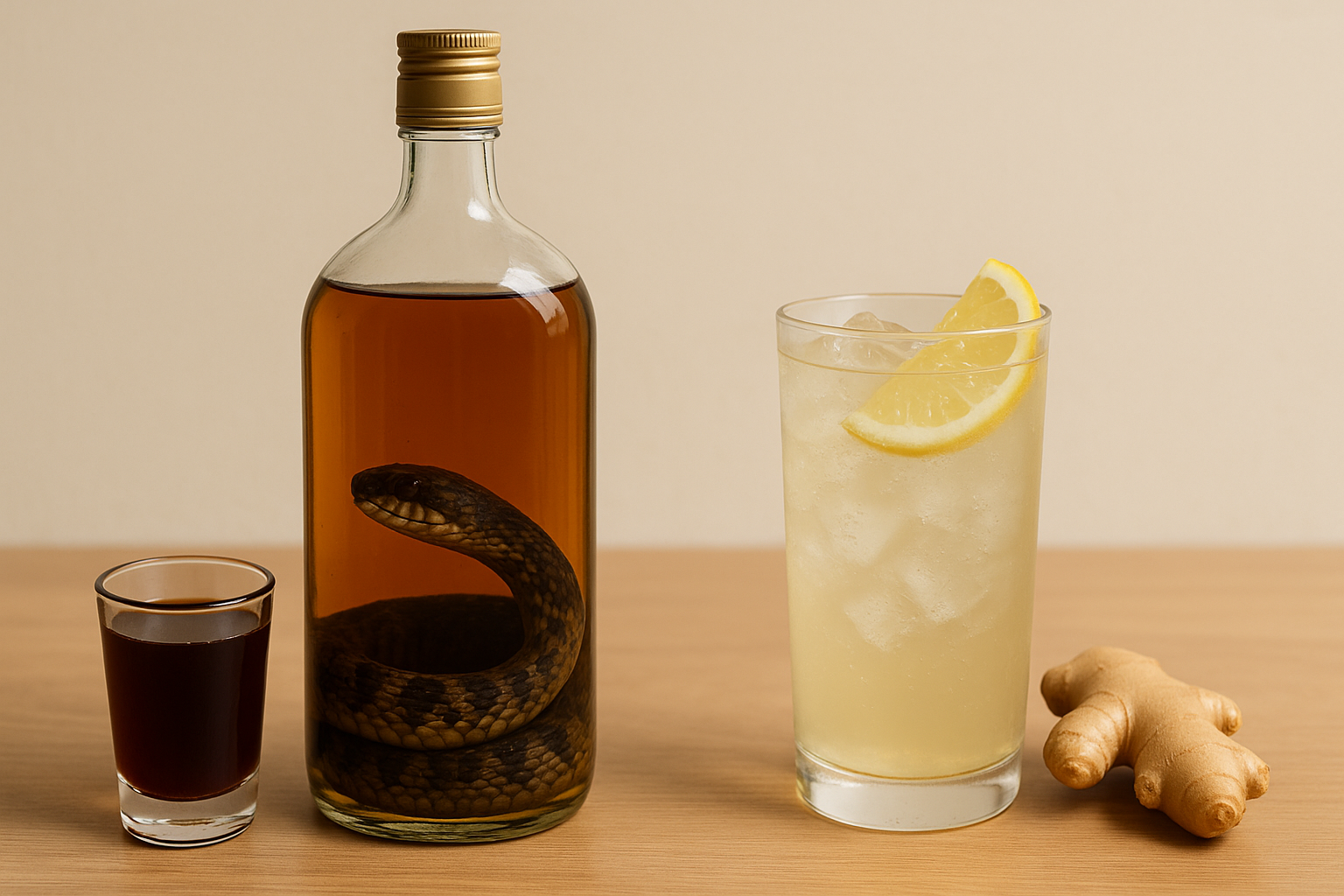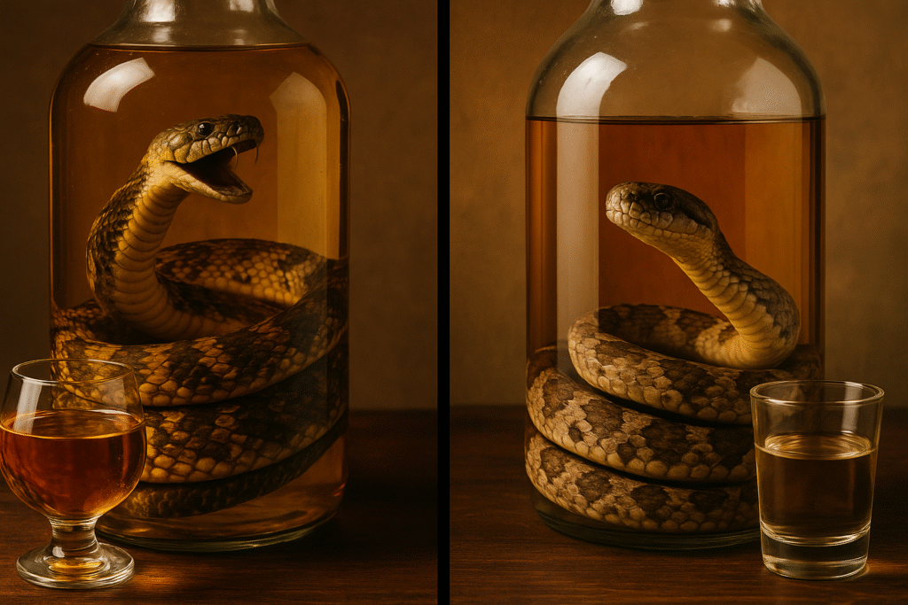 どちらも「毒ヘビを漬け込んだ強壮酒」としてひと括りにされがちですが、原料ヘビの種類も、生息域も、文化的な背景も異なります。