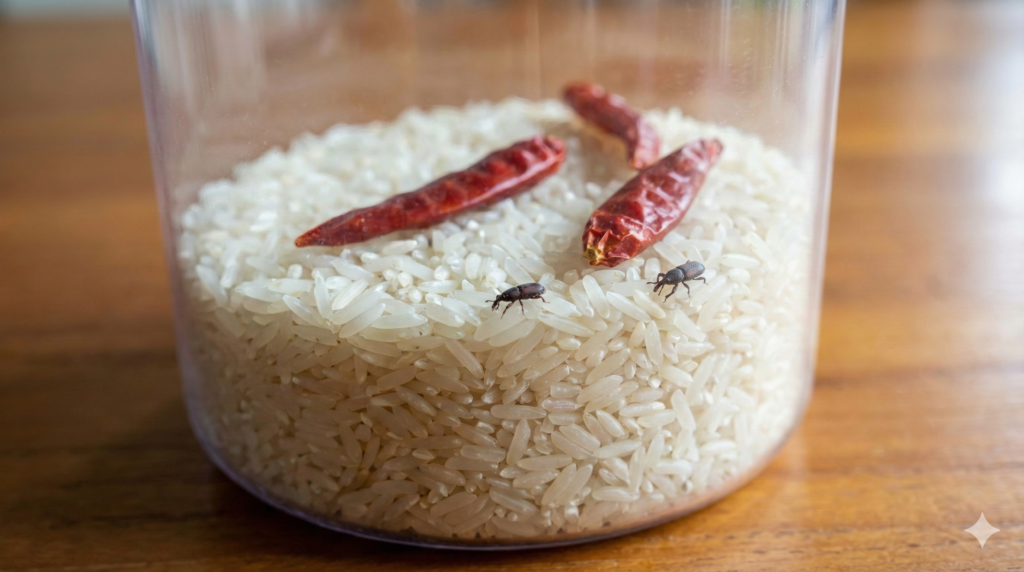 米びつの大きさ、密閉度、室温、湿度で効果がぶれます。だから私は、唐辛子は「お守り」扱いにします。