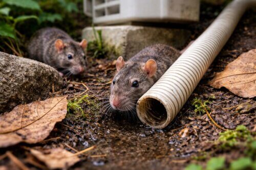 ホースの内径は大きくないため、すべての個体が入れるわけではありませんが、体の小さな個体や幼いネズミは侵入できることがあります。室外機まわりでカサカサ音がする、ホース先端にかじった跡がある、水の流れが悪いといった変化は要注意です。ホースの先端が泥や落ち葉で塞がれていると、排水不良としてしか認識されず、侵入の兆候として見逃されることがあります。排水不良とネズミ被害は別物のように見えて、実際には同時に起きていることもあります。