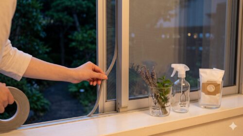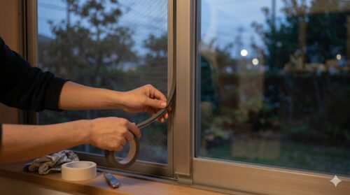 また、家にある「隙間テープ」や、あるいは不要になった「新聞紙や布」も立派な防具になります。築年数の経過した家では、サッシの合わせ目が摩耗して隙間ができていることがあります。夜間に室内から光を当て、外から漏れる光を確認してください。そこが蛾の入り口です。丸めた新聞紙を一時的に詰めたり、養生テープで目張りをしたりするだけで、侵入リスクを劇的に低減できます。