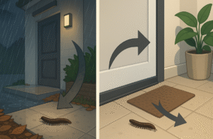 対策は、夜間の水はけ確保、植木の直置きを避ける、ドア下の隙間をパッキンで補修、ポーチ周りに容器トラップを設置して動線上で削る、といった手順が現実的です。