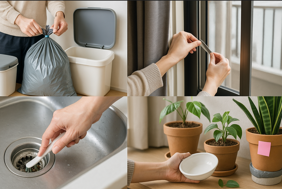 最終的な再発防止には、生ごみの即日密閉・排水口の定期清掃・夜間の光漏れ対策・網戸や配管周りの隙間封止といった環境管理が要となります。