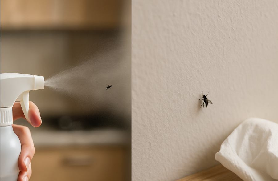 静止中は距離を詰め、スポット噴射で体表が明確に濡れる量を一気に当てます。噴霧後は落下位置を想定し、ティッシュペーパーなどで即回収できるように準備しておくと二次汚染を防げます。