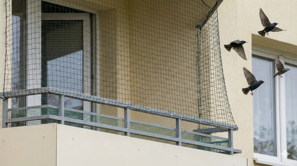 ムクドリのベランダ対策で、再発を最も止めやすいのが防鳥ネットです。